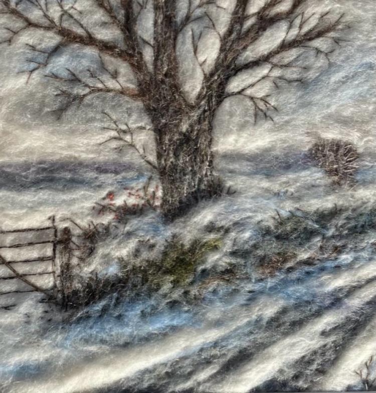 Ar ôl bod yn rhan o gydweithfa weldio celfyddydol i fenywod, ac ar ôl blynyddoedd lawer o beidio â chreu, dychwelodd i'w hymarfer creadigol yn 2022 ac mae bellach yn artist tecstilau hunanddysgedig arobryn. Trwy ei chelf, mae hi'n ymgymryd â phrosesau araf, yn adeiladu fesul haen a brodweithio gyda llaw, gan gynnig gwrthbwynt i'n bywydau cyflym a'i meddwl prysur ei hun. Mae hyn yn arbennig o berthnasol mewn oes lle mae deallusrwydd artiffisial cyflym yn ymyrryd fwyfwy ar uniondeb artistig. Nid yn unig y mae ei gwaith yn anrhydeddu sgiliau crefftio traddodiadol ond mae'n eu plethu â chysyniadau ystyrlon, gan ddefnyddio safbwyntiau hanesyddol yn aml i fyfyrio ar gymdeithas gyfoes.