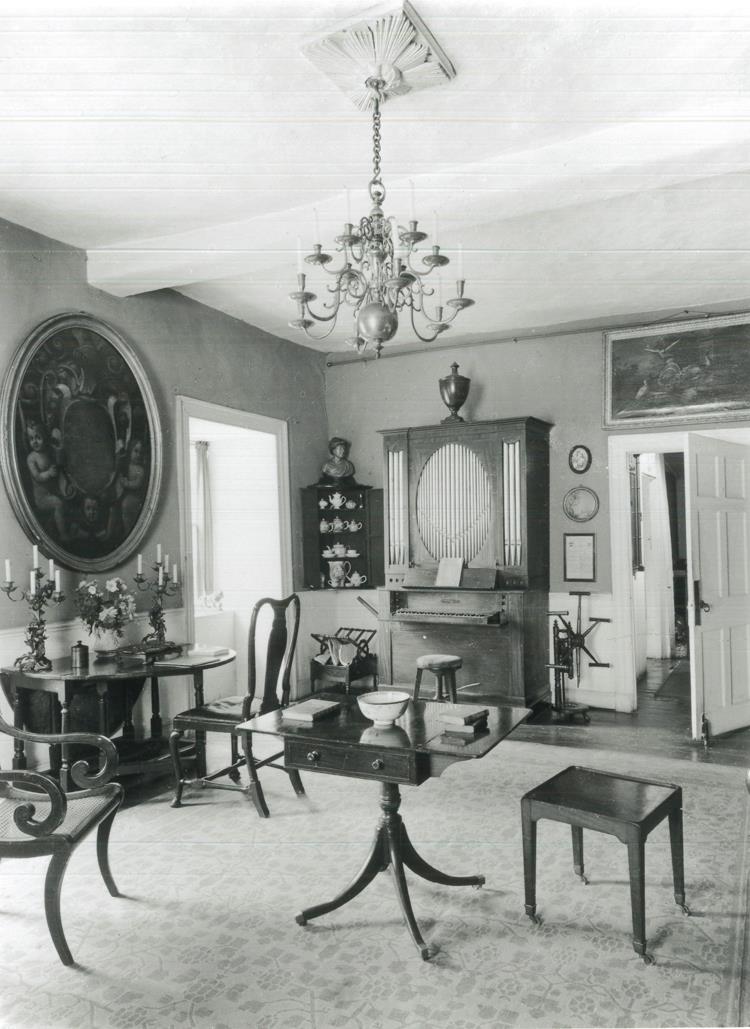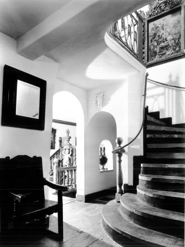Mae grât a bwa llydan y lle tân (cegin fferm Duduraidd yn wreiddiol, ac ystafell fwyta wedi hynny) yn ffurfio’r canolbwynt a adeiladwyd o’i gwmpas. Ar ochr y cwm, datblygodd tŵr rhwng dwy adain sy’n dyddio o 1660, ac sy’n edrych dros y clos hir o’r 18fed ganrif. Islaw, ar yr un lefel â’r ardd isaf, mae bragdy a ffynnon; mae gan y prif ystafelloedd uchod (a ddaeth yn llyfrgell ar y llawr gwaelod ac ystafell gyfarch ar y llawr cyntaf) ffenestri o’r 18fed ganrif wedi’u gosod yn wal y talcen sy’n gofnod o’r esblygiad hwn.