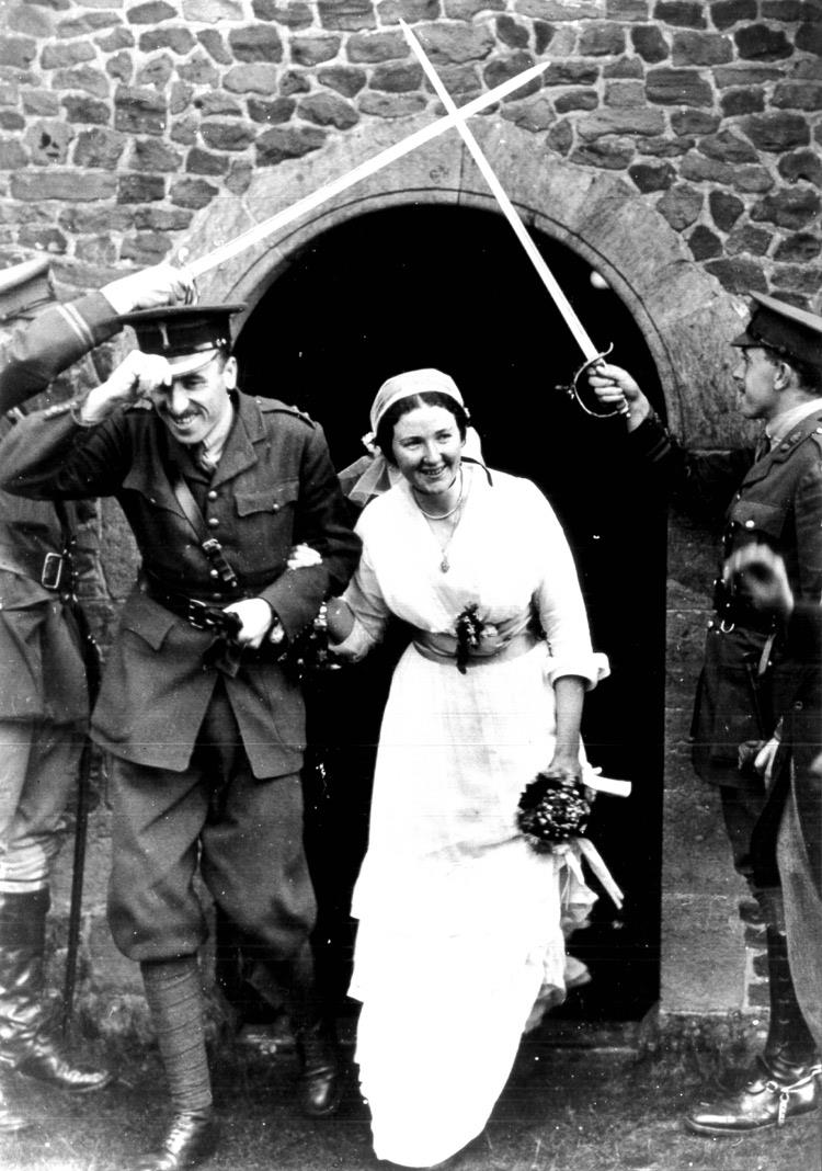Priododd Clough Williams-Ellis ac Amabel Strachey ym 1915, yn ystod y rhyfel byd cyntaf, pan oedd Clough yn gwasanaethu fel Is-gapten yn y Gwarchodlu Cymreig, ac Amabel yn gweithio fel nyrs Cymorth Gwirfoddol Neilltuol yn nhŷ ei rhieni, Newlands Corner, yn Surrey, a oedd wedi cael ei hawlio fel ysbyty milwrol.